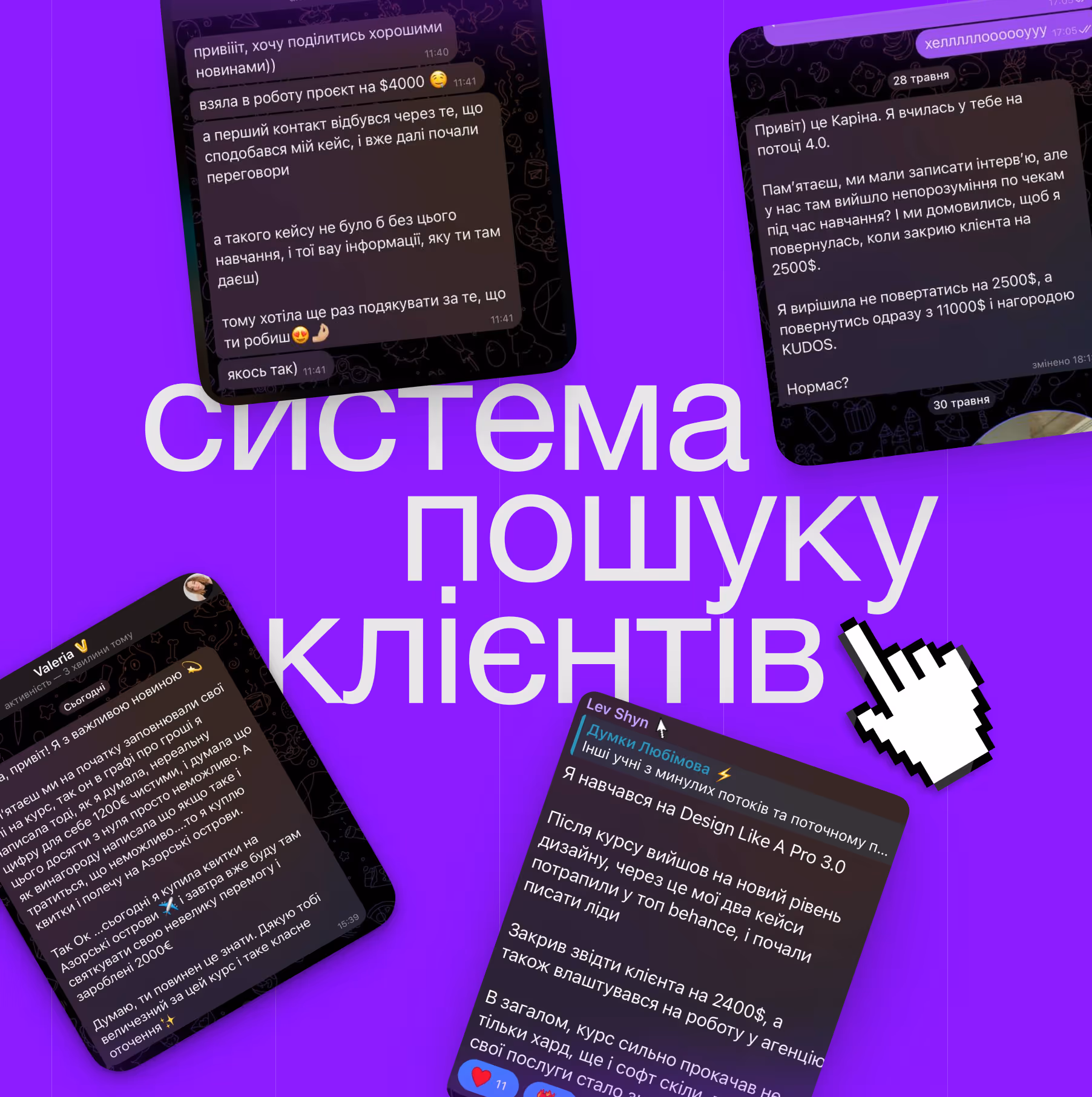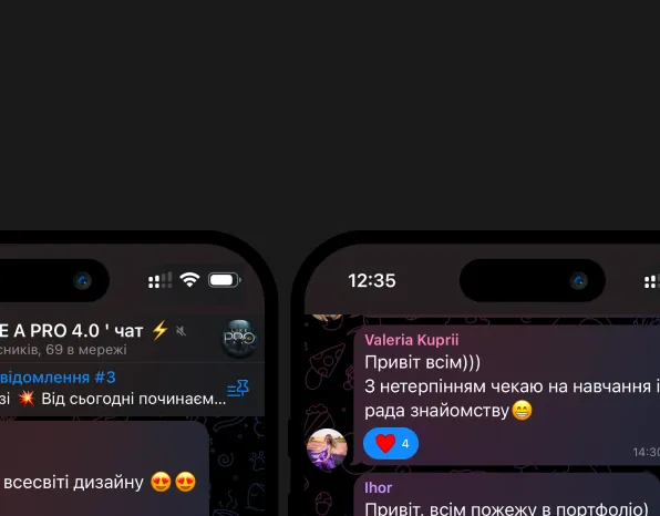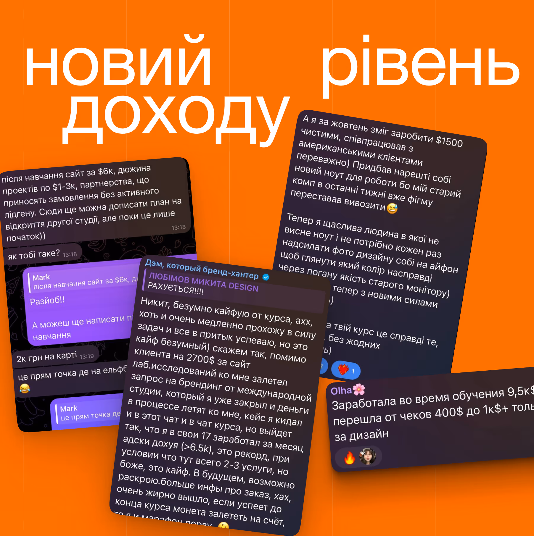Один із кращих випускників Design Like a Pro, який вже пройшов твій шлях, зробивши найсильніші результати по дизайну та заробітку, буде з тобою на зв’язку весь курс: проводити дзвінки, наставляти, допомагати з домашніми та підтримувати в чаті